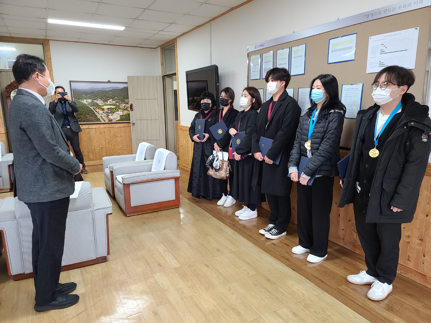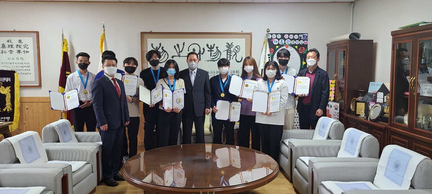 지난 25일부터 2까지 4일간 서울 양재동 aT센터 2전시장과 각 대학에서 분산 개최한 ‘2020 대한민국 국제요리&제과경연대회’가 열렸다. 통일부, 농림축산식품부, 교육부, 행정안전부, 보건복지부, 해양수산부, 환경부, 고용노동부, 중소벤처기업부, 서울특별시, 식품의약품안전처, 농촌진흥청, aT한국농수산식품유통공사, 수협, 한국산업인력공단 등 정부 부처 등 27개 유관단체가 후원하고 중국, 일본 등에서 2000여 명이 출전한 국제규모의 요리경연대회다. 이번 대회 라이브 경연대회에 출전한 유원대 호텔외식조리학과 유원대팀(박운식, 박신후, 임규진, 이용혁)이 최고의 영예인 대상을 수상했다. 이들은 영동산 블루베리 와인을 활용해 만든 갈릭마요 요거트를 곁들여 독창적인 맛의 돼지 갈비찜을 선보이며 심사위원들의 극찬을 받았다. 망고퓨레&흑임자 소스 새우테린과 웰링턴 스타일의 돼지 갈비찜, 초콜릿 말차 무스로 구성한 3코스 메뉴로 라이브경연 대상에 이어 통일부 장관상도 추가 수상했다. U1 2팀(송영헌, 윤근주, 이상연, 노형주)도 유자 머랭소스를 곁들인 새우 새면말이 튀김과 영동와인소스를 곁들인 전복과 꾸리살 약밥 롤라드, 딸기 판나코타 메뉴를 선보여 금상을 받았다. 이번 대회에 총 10명이 출전한 유원대는 3코스 라이브 경연과 전시 부문에서 참가자 전원이 금상을 받고, 대상과 통일부 장관상을 수상하는 진기록을 세웠다. 특히 유원대팀은 충북 영동지역의 특산품인 일라이트 돈육과 블루베리, 곶감, 포도, 와인 등을 활용한 작품을 선보이며 지역사회의 우수 농산물을 널리 홍보하는 데에도 일조했다는 평가를 받았다. 이번 대회에서 학생들을 지도한 허영욱 교수는 “매년 각종 요리대회에서 우수한 성적을 거두게 된 것은 유원대학교의 특화 프로그램인 비교과 활동 지원과 학과의 자랑인 브랜드 셰프 양성 교육의 결과”라고 소감을 밝혔다