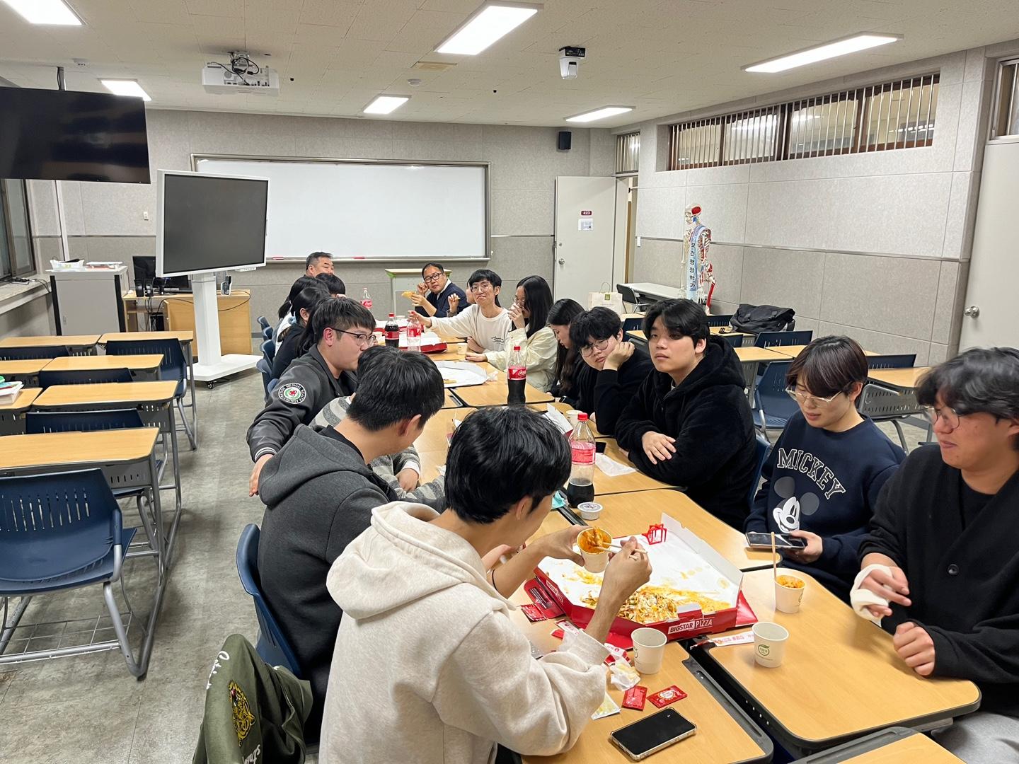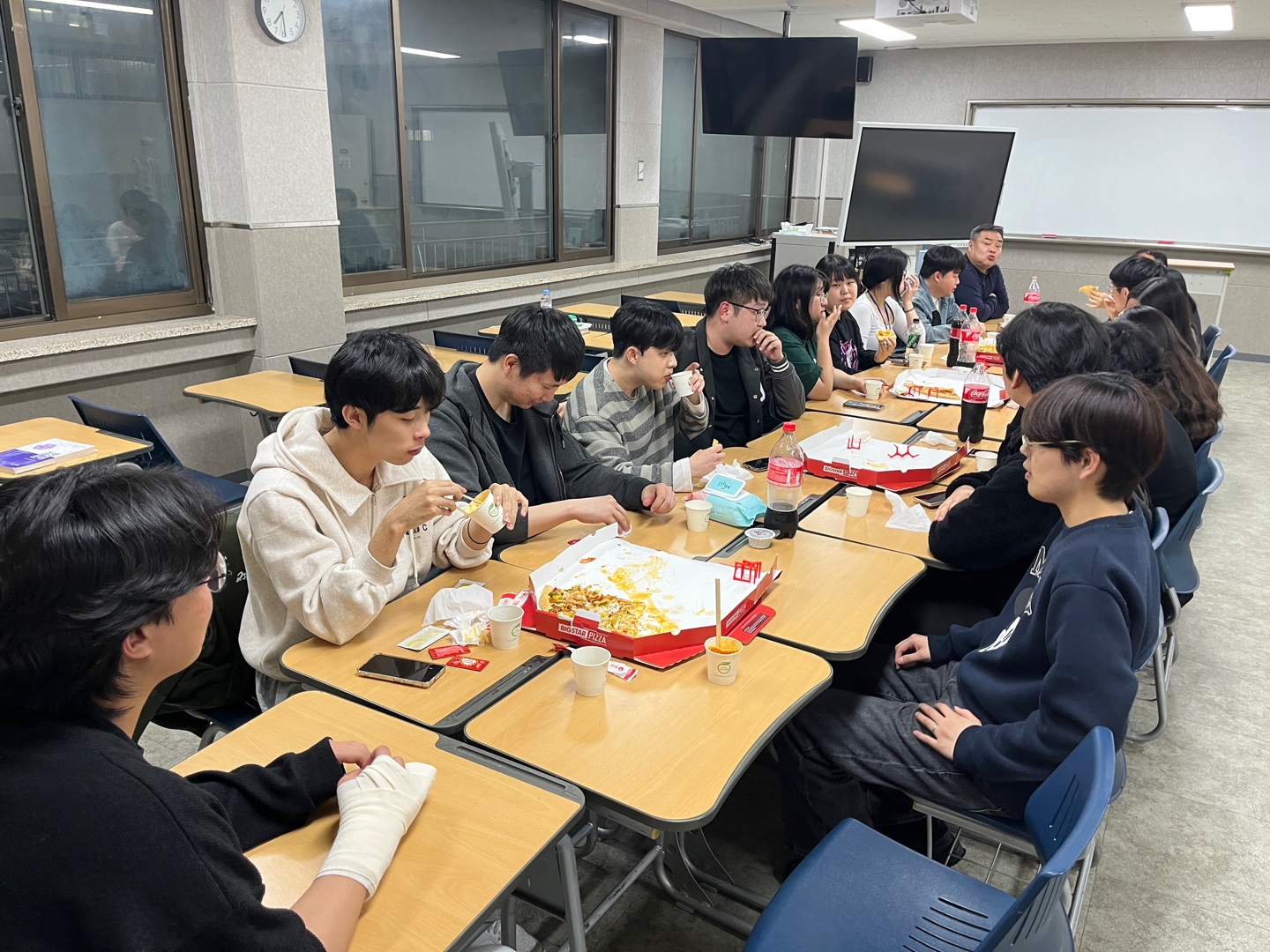 중간고사 시험기간 동안 학교에 남아서 공부하는 보건행정학과 학생들과의 간식 이벤트
