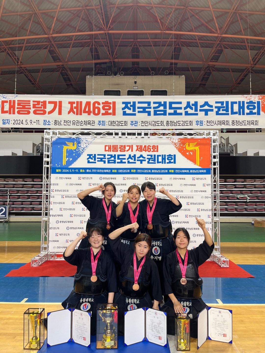 충북 유원대학교 스포츠학부 공수빈(4학년) 선수가 지난 23~25일 열린 ‘23회 회장기 전국대학검도선수권대회’에서 여자부 개인전 우승을 차지했다. 여자1부 개인전에 출전한 유원대 공수빈 선수는 예선전에서 경운대학교 김유정 선수를 2대0으로 이기고 16강에 올라 용인대 정현지 선수를 2대0으로 꺾었다. 8강에서는 경북대학교 김서윤 선수를 1대0으로 이겼고 준결승전에서는 국가대표인 경북대학교 신동아 선수를 1대0으로 승리해 결승전에 진출했다. 결승전에서는 국가대표인 용인대학교 김은빈 선수와의 긴 연장전 끝에 멋진 머리 한판으로 우승을 거머쥐었다. 또 남자1부 통합 단체전에서 유원대팀(남현준, 김규민, 박성준, 이범준, 김두현, 이경태, 김희찬, 김영운, 김성일)이 16강에서 제주대를 만나 6대1로 대승을 거뒀고 8강에서 경운대를 4대1로 이기며 4강에 진출했다. 4강전에서는 용인대학교와 맞붙어 2대2 동점 상황에서 1포인트 차이로 결승에 올랐다. 결승에서는 대전대를 만나 5대1로 아쉽게 패배하며 준우승에 머물렀다. 이외에도 '22회 회장기 전국대학 OB 검도대항전'에서 남자 유원대학교 OB팀(오상현, 강찬영, 남기원, 오정환)이 계명대 OB팀을 2대1로 승리하고 결승에 진출했으나 대구대 OB팀과의 결승에서 2대2 동점 후 1포인트 차이로 아쉽게 준우승을 차지했다. 유원대 검도부는 각종 국내 대회에서 우수한 성적을 거두며 세계검도선수권대회 등 국제 대회에서도 두각을 나타내고 있다. 이는 스포츠학부 김민환 교수의 지도하에 이룩한 성과로 유원대학교는 매년 명실상부한 검도 명문대학으로서의 면모를 보여주고 있다.